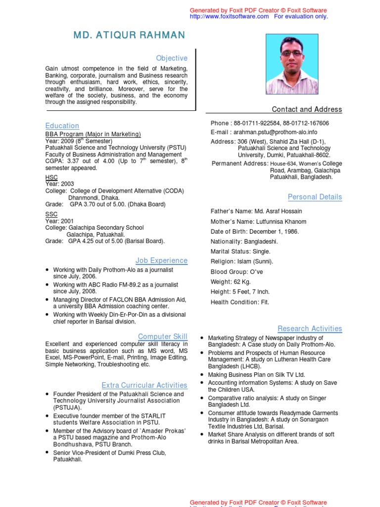 Standard cv format for bangladesh pdf.